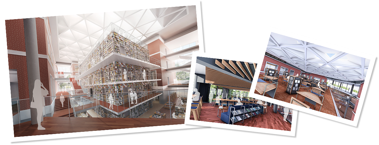 新図書館は、資料に囲まれた空間に身を置き、高い志をもつ他の学習者の気配を感じられる空間を目指します。集密書架により高い収蔵能力を確保しながらも、閉架書庫や自動書庫は設けず、館内すべての資料を直接手に取ることができます。興味の赴くままに書架を歩き、新たな資料との出会いを演出します。
