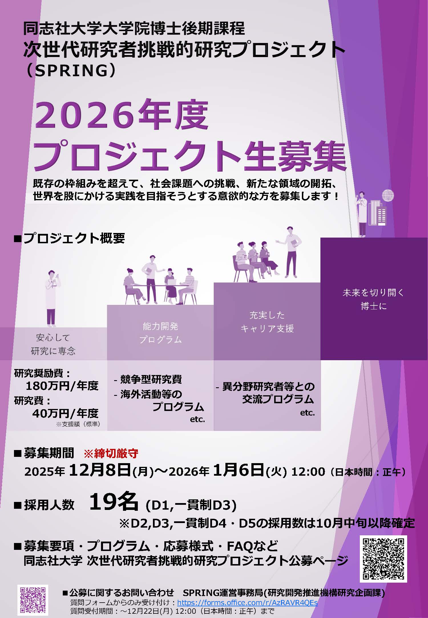 2026年度同志社大学大学院博士後期課程次世代研究者挑戦的研究プロジェクト学生募集について(公募情報)